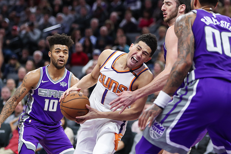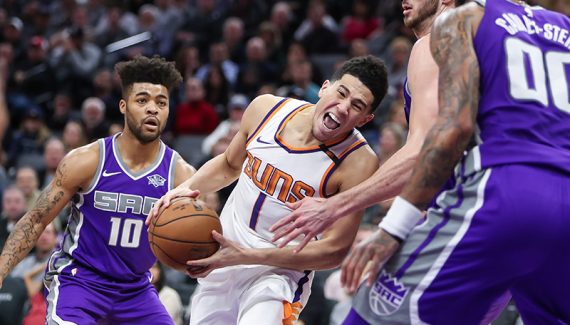 C’est alors que Devin Booker sort de sa torpeur et termine sa rencontre sur une bonne note. Dans les 90 dernières secondes, l’arrière inscrit trois shoots importants, dont un énorme et lointain 3-pts dans l’axe. Face à cette montée en température, les Kings sont à terre et les Suns s’imposent donc 111-101 avec 26 points de leur arrière (en 25 shoots).