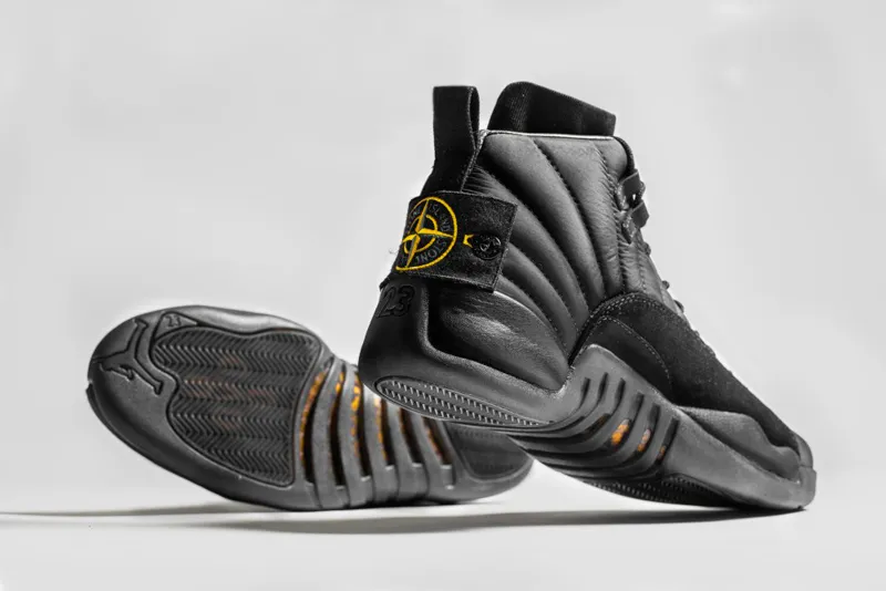 À ce tarif, quelques privilégiés peuvent s'offrir une déclinaison noire de la Jordan 12 “Stone Island” confectionnée pour l'anniversaire de Drake en novembre dernier. La tige utilise les morceaux d'une veste de la marque, mais aussi quelques pièces de denim. L'extrémité des manches sert encore une fois à donner la sensation d'une chaussette au niveau du col.