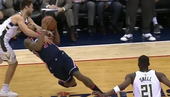 « That's a flop ! » Voilà ce qu'a hurlé Matthew Dellavedova en direction de Bradley Beal, dans le 4e quart-temps du Wizards-Bucks de cette nuit. Un flop, vraiment ? En revoyant les images du mauvais geste du Buck sur le Wizard, on a pourtant un peu de mal à se dire que son adversaire en rajoute. Ce dernier a été saisi par le haut du corps, quasiment au niveau du cou, par Matthew Dellavedova qui voulait stopper la contre-attaque. Mission réussie pour lui donc. Mais les arbitres ont décidé de l'exclure en lui attribuant une faute flagrante de niveau II.