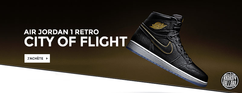 Commandez chez B4B la Air Jordan 1 City Of Flight qui célèbre le NBA All-Star 2018 à Los Angeles avec des touches d’or sur un cuir premium.