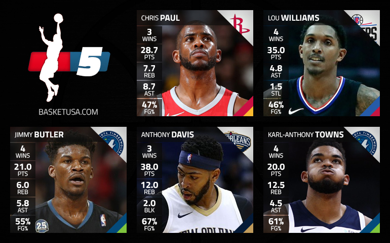 Comme l’an passé, Basket USA vous propose chaque lundi son cinq majeur de la semaine puisque la NBA décerne simplement deux trophées de « Player Of The Week », pour chaque conférence.