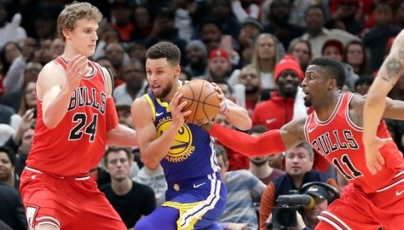 Si les Warriors commencent la rencontre avec une adresse diabolique, ce sont six points de Lopez et un contre de Lauri Markannen sur Stephen Curry qui gardent les Bulls au contact (20-17). 21 points des Splash Brothers et 70% de réussite aux tirs permettent cependant à Golden State de faire l’écart mais un 17-0 de Chicago à cheval sur les premier et deuxième quart temps surprend des champions en titre peu rigoureux (45-38) !