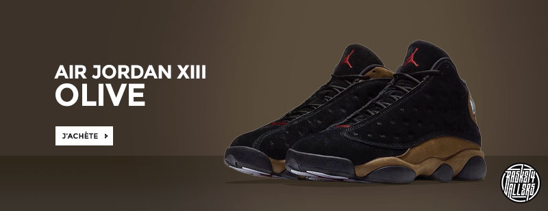 Commandez chez B4B la Air Jordan 13 Olive avec son design en daim doux dont l’association de noir et olive met encore plus en valeur le Jumpman rouge.