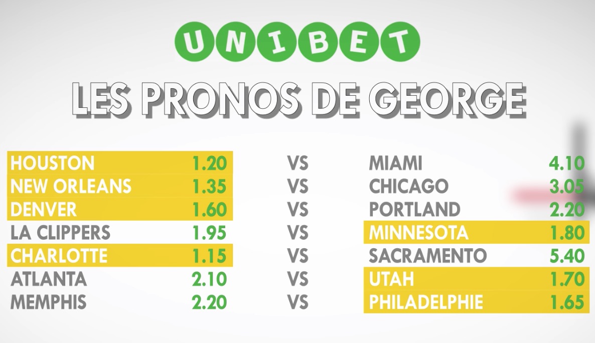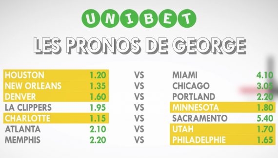 Notre expert Unibet mise sur quelques belles cotes comme la victoire de Minnesota chez les Clippers ou celle des Nuggets face à Portland. A vous de jouer !