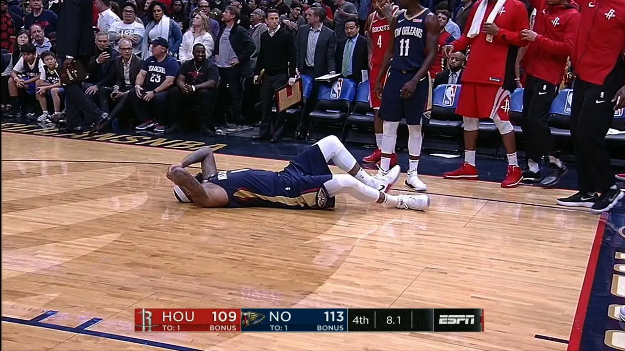 L’annonce d’Adrian Wojnarowski ne tarde pas à confirmer l’atroce nouvelle sur ESPN : DeMarcus Cousins ne rejouera plus cette saison, et l’IRM passée après la rencontre assure qu’il s’agit d’une rupture du tendon d’Achille. C’est un coup de massue immense pour les Pelicans qui sont actuellement sixièmes dans la conférence Ouest.