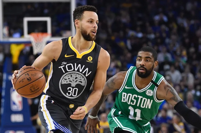 Pas de round d’observation dans ce duel entre les deux meilleures équipes de chaque conférence. Derrière le trio Horford – Irving – Brown, Boston démarre en trombe, marquant six de leurs sept premières tentatives tout en maintenant Golden State à cinq sur douze aux tirs (20-12). Rapidement, ce premier quart temps tourne au duel entre Stephen Curry et Kyrie Irving. Que ce soit en pénétration ou de loin, les deux meneurs se rendent coup pour coup. Alors que Curry est le seul à briller face à la défense rugueuse des Celtics, Kyrie peut lui compter sur Jaylen Brown pour l’épauler. Les deux joueurs terminent le premier quart temps avec 14 points chacun à 100% de réussite et donnent dix longueurs d’avance à leur équipe (37-27).