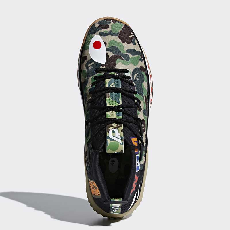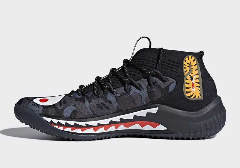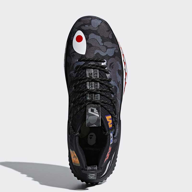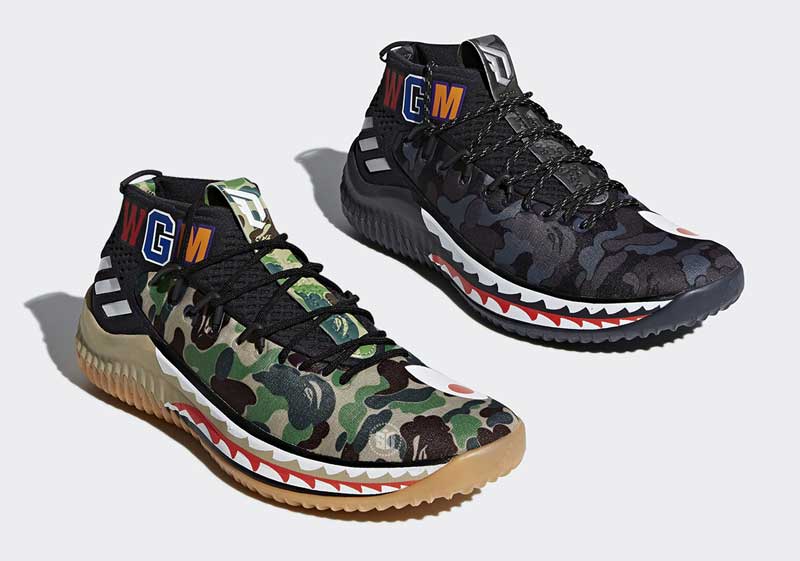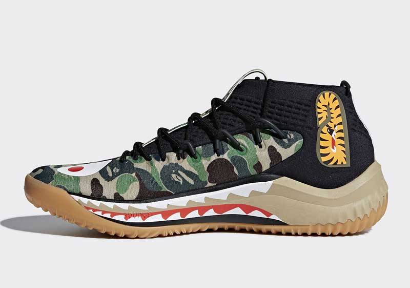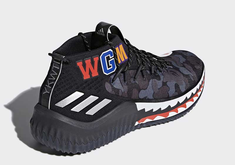 La griffe japonaise a posé des dents de requin sur la semelle du modèle signature de Damian Lillard, sans oublier son classique motif camouflage.