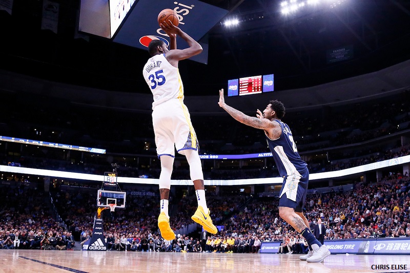 Joueur de l’ancienne école, Kevin Durant est certes un superbe shooteur à 3-pts, mais son éducation basket est ancrée à mi-distance (n’est-ce pas Dirk Nowitzki…). Pour preuve, cette saison, il a tenté plus de tirs à mi-distance (249) que de 3-pts (235).