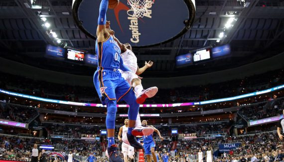 Sonnés cinq jours plus tôt par les 46 points de Russell Westbrook, les Wizards ont pris une belle revanche en s’imposant à la maison face à OKC cette nuit. Un « match-référence » pour Washington qui a su rester concentré jusqu’au bout pour l’emporter d’un souffle (102-96) et briser au passage la série du Thunder (8 victoires de suite). C’est également un beau clin d’oeil du destin alors que John Wall va subir son opération chirurgicale au genou aujourd’hui (6 à 8 semaines d’absence). Avec 25 et 21 points, Otto Porter Jr et Bradley Beal ont réussi à résister à Paul George (28 pts) et Carmelo Anthony (19pts à 7/21), tandis que Westbrook a vécu une soirée compliquée : 13 pts à 5/18 aux tirs. Pas un mince exploit puisque aucune équipe n’avait réussi à le faire depuis près de trois semaines.