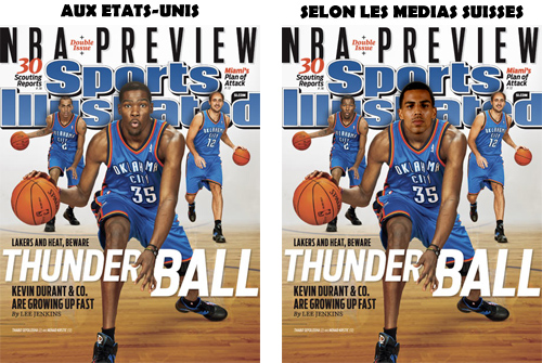 18h06 : Sans aucun lien avec l’histoire précédente, Kevin Durant fait pression sur Sports Illustrated pour que ses potes Thabo Sefolosha et Nenad Krstic fassent la couverture du magazine. L’ailier du thunder est donc officiellement plus gentil que Grognon et Groschéri. Mais toujours moins que Grosbisou.