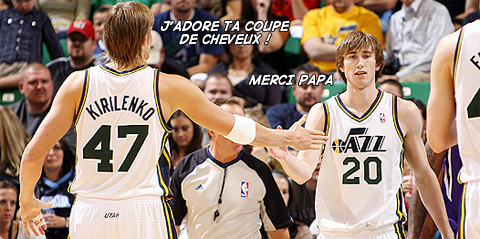 05h47 : Raja Bell a reçu un mémo spécial de David Stern. Après la dernière réunion du conseil de la NBA, la ligue avait ainsi décidé que l’arrière du Jazz devait porter un casque pour se protéger de Kobe Bryant, l’arrière des Lakers lui ayant infligé 19 points en un seul quart-temps lors de leur dernière rencontre. C’est en tout cas ce que son coéquipier Kyrylo Fesenko a essayé de lui faire croire. Résultat : un grand coup de pied dans le morceau de papier, un vestiaire hilare. Et une nouvelle élimination en playoffs ?