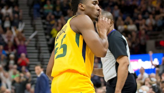 Western Conference @Kia NBA Rookie of the Month @spidadmitchell of the @UtahJazz in action! #KiaROTM pic.twitter.com/yvWBH0R6Hp