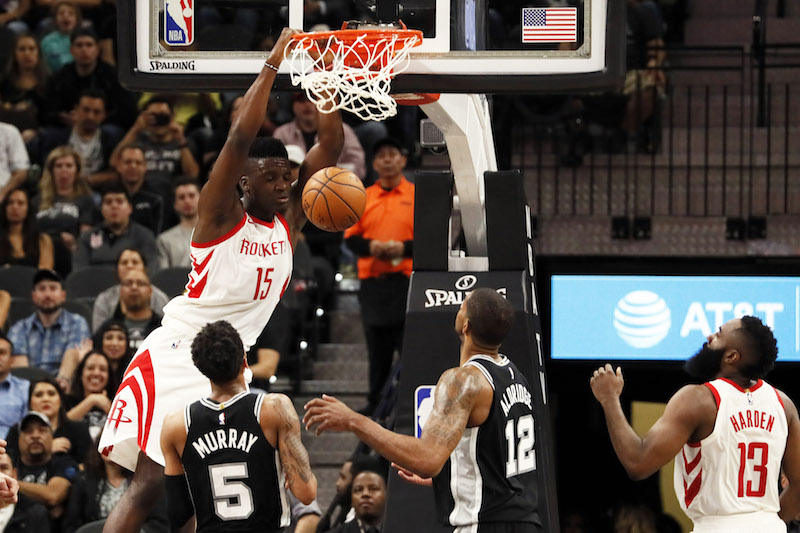 Largement dominés pendant presque trois quart-temps, les Spurs ont profité d’une baisse de régime des Rockets pour passer de -19 à -6 dans le dernier quart. Mais ils ont manqué de jus et de main d’oeuvre pour inverser totalement la tendance. Au côtés d’un Clint Capela dominateur (14 pts, 13 rbds et 5 cts), Chris Paul et James Harden ont mis les paniers qu’il fallait dans le money time pour offrir une belle victoire aux leurs (102-91).