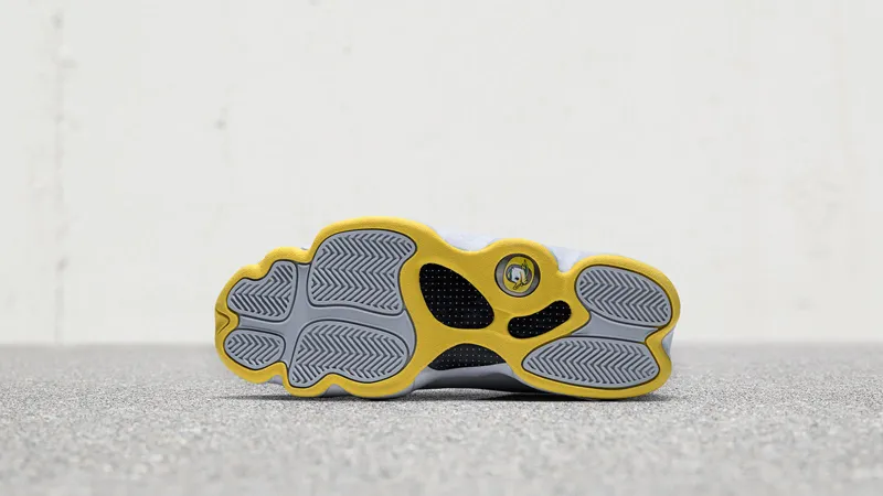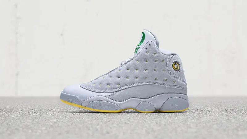 La petite nouvelle est une Air Jordan 13, avec une base grise, accompagnée par quelques touches de jaune et de vert. Le détail le plus fun, évidemment, c'est l'apparition de la mascotte d'Oregon à la place de l'hologramme normalement réservé à Michael Jordan et son numéro 23.