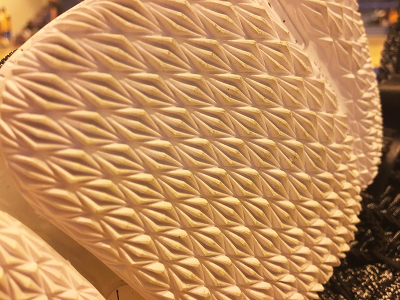 Il n’y a pas eu de déséquilibre notable, et notre cheville n’a pas tourné, mais on ne se sentait pas non plus en sécurité. Aucun renfort ne bloque vraiment le pied en-dehors de celui au talon. Et ce n’est sûrement pas pour rien que des ailerons ont été ajoutés sur l’extérieur de la chaussure que LeBron James porte en match. Car la semelle n’est pas assez large sous l’avant du pied pour garantir une stabilité parfaite. Pas pour rien non plus qu’il portait plutôt la Soldier 11 avant ce changement.