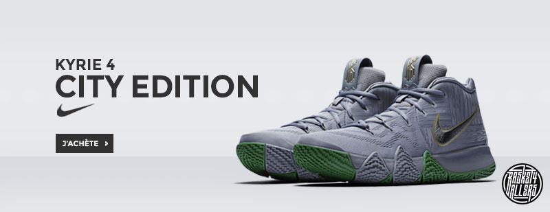 Commandez chez B4B les Nike Kyrie 4 City Edition aux motifs hommage au parquet du TD Garden des Boston Celtics.