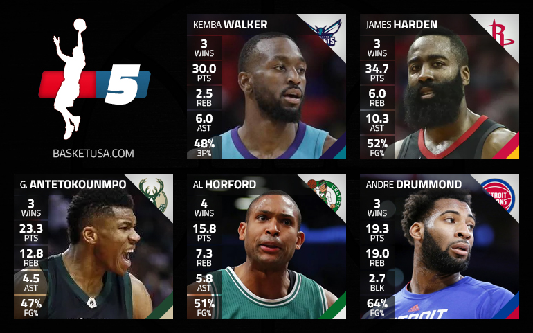 Comme l’an passé, Basket USA vous propose chaque lundi son cinq majeur de la semaine puisque la NBA décerne simplement deux trophées de « Player Of The Week », pour chaque conférence.