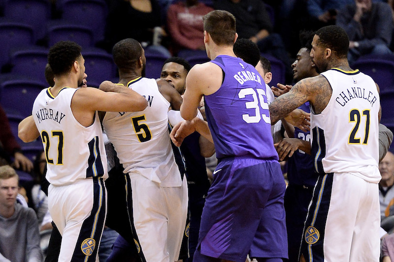 Trois petites minutes de jeu samedi soir, et Troy Daniels et Will Barton en venaient presque aux mains après une tentative de croche-pattes du premier sur le second. Si Will Barton était la cible du shooteur de Phoenix, il y avait une raison. Quelques jours auparavant, le joker des Nuggets s’était moqué des Suns au micro du podcast de Richard Jefferson, et il n’imaginait pas que Troy Daniels et ses coéquipiers écouteraient…