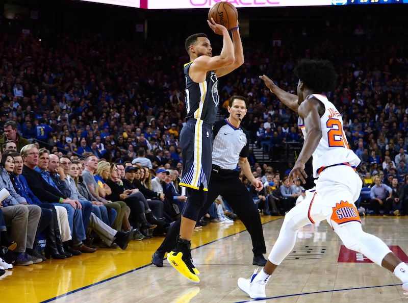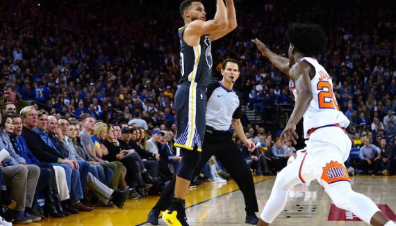 Pour tuer la monotonie d’un match de février face à Phoenix et éviter une potentielle pluie de ballons perdus, Steve Kerr avait donné les clefs de la maison à ses joueurs. Résultat : six joueurs à plus de neuf points, 36 passes décisives contre 12 pertes de balles, un adversaire limité à 34% de réussite aux tirs, et une victoire finale de 46 points (129-83). Parmi les bonnes surprises de la soirée pour Kerr, les bonnes performances d’Omri Casspi (19 points, 10 rebonds), de Nick Young (16 points) et de Patrick McCaw (9 points). En face, en l’absence de Devin Booker, seul Elfrid Payton (29 points, 8 rebonds, 5 passes) a su tirer son épingle du jeu.