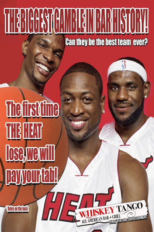 La patron du Hollywood’s Whiskey Tango All-American Bar & Grill croit dur comme fer en les bons resultats du Heat cette saison, à tel point que la maison offre jusqu’à 25$ de consommations à chaque client en cas de défaite du Mega Three.