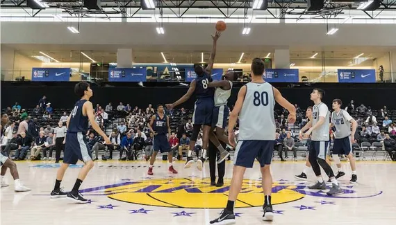 En marge du All-Star Week-End, dans la salle d’entraînement des Lakers, se tenait la 4e édition du camp Basketball Without Borders. Pendant trois jours, près de 70 filles et garçons nés en 2000 et 2001, en provenance d’une trentaine de pays, se sont entraînés puis ils ont joué devant une armée de scouts NBA puisque les trente franchises étaient représentées !