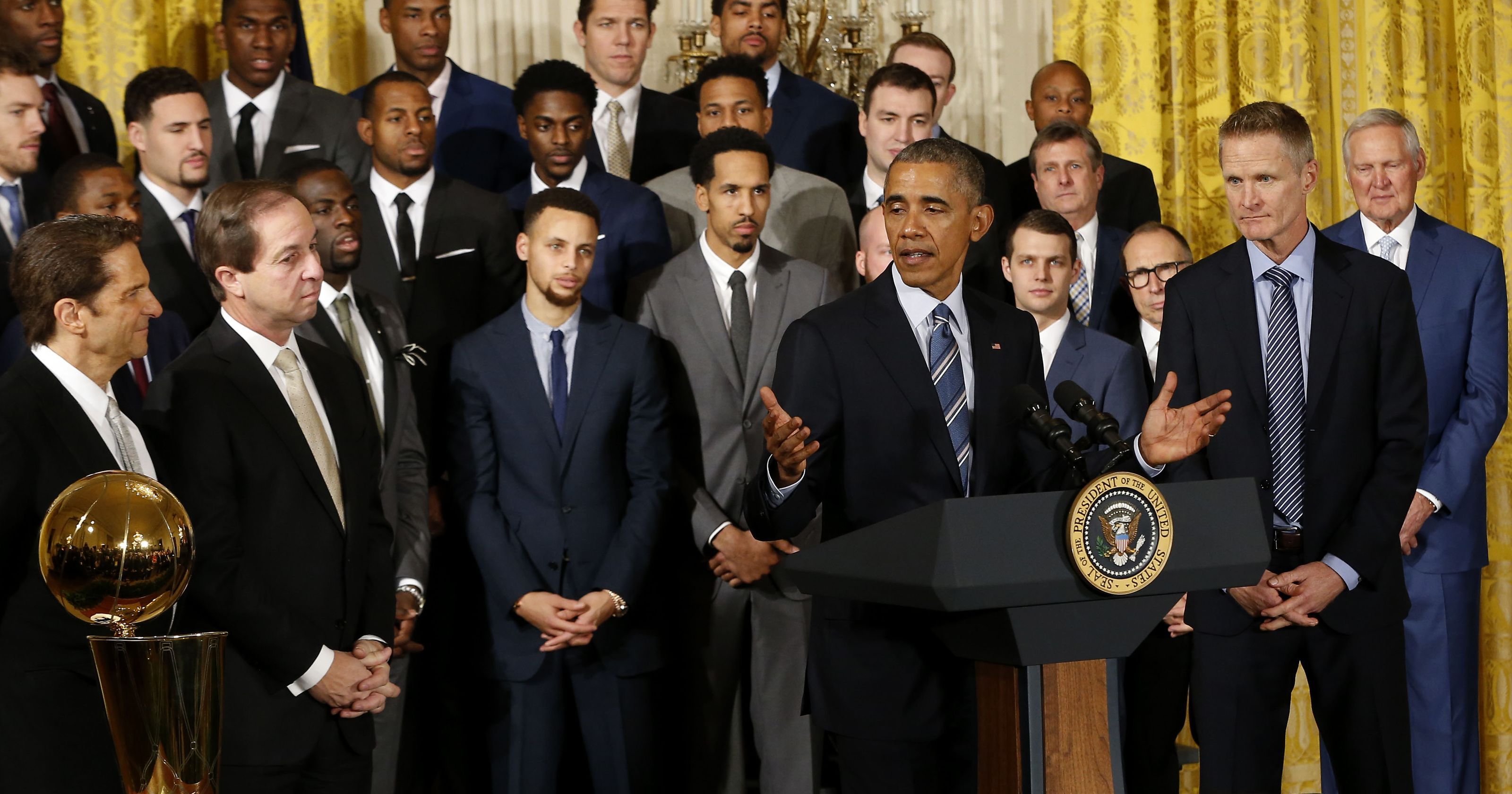 « C’est leur titre. La Maison Blanche a annulé l’invitation, et c’est donc à eux de décider ce qu’ils veulent faire », explique Kerr. « Ils ont leur emploi du temps. Je veux que les joueurs passent une bonne journée et s’amusent. »
