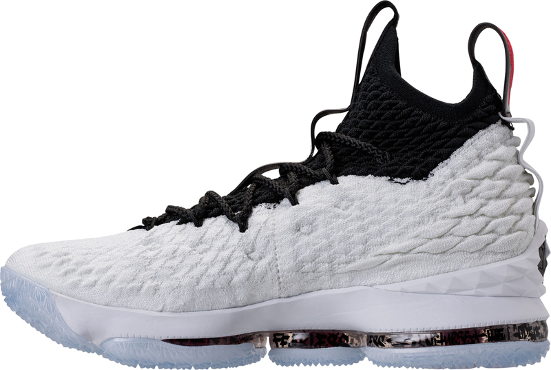 Pas besoin d’en faire des tonnes avec les couleurs pour obtenir une jolie chaussure. Du blanc en bas, du noir en haut et voilà la LeBron 15 “Graffiti.”