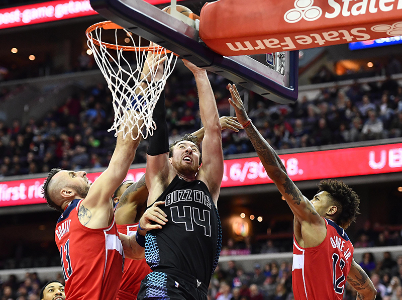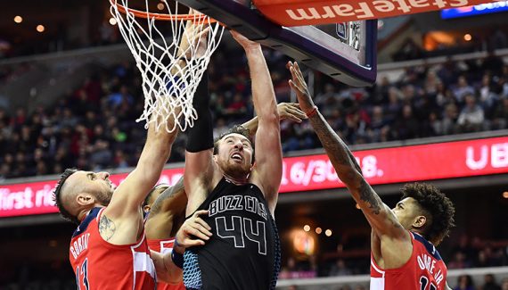 Même si Washington reste sur trois succès consécutifs et huit victoires sur ses dix dernières sorties, en l’absence de John Wall, ce sont bien les Hornets qui démarrent le match avec le plus d’envie. Nicolas Batum sert ses partenaires, que ce soit au alley-oop ou à 3-points, et Charlotte prend déjà 10 points d’avance (36-26) après un quart-temps.