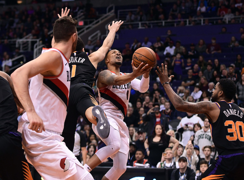 Moment choisi par Portland pour revenir aux bases. C.J. McCollum fait apprécier sa technique à mi-distance puis Lillard sert Jusuf Nurkic, et voilà Portland a -7 en trois minutes (95-88). Nurkic bâche Booker, puis Lillard plante un 3-points et l’écart n’est plus que de cinq points.