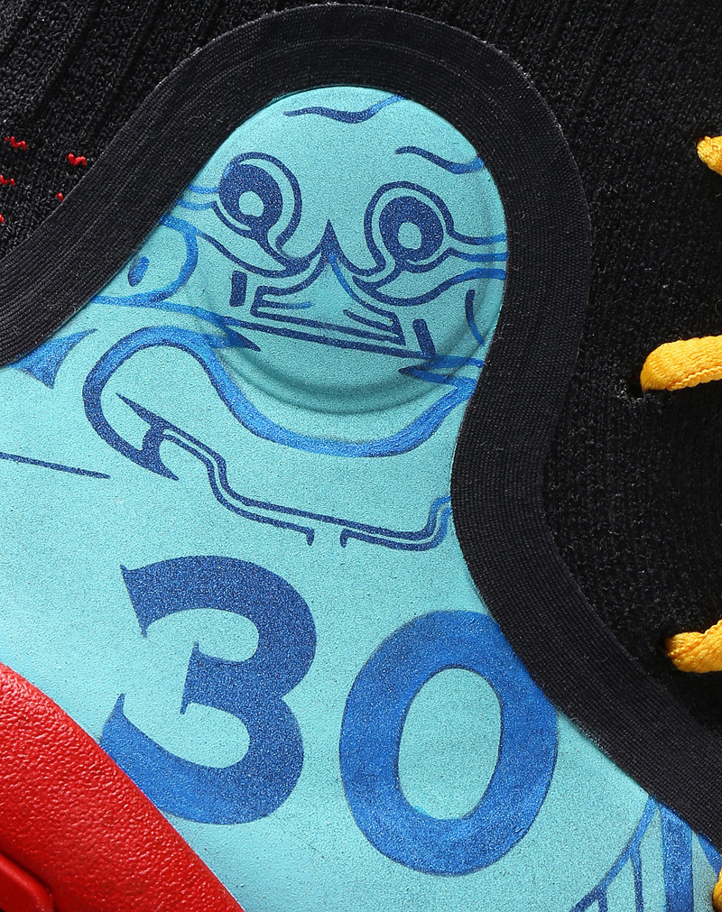 La teinte célèbre le Nouvel An Chinois. Le dragon, le pont et le symbole chinois de la “prospérité” font aussi écho au maillot “City” des Warriors. Une belle manière de célébrer l’évènement.