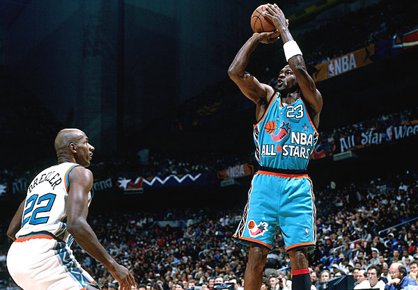 Ils jouaient au même poste, second arrière, avec une élégance athlétique similaire. Mais Jordan était un meilleur shooteur, meilleur sur le départ en dribble, meilleur passeur, meilleur défenseur, meilleur rebondeur et même un meilleur dunkeur que Drexler, dont la détente verticale lancée, mesurée à 112 centimètres, aurait sans doute surpassé celle de Jordan.