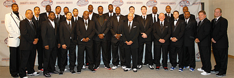 - Les Bobcats posent pour la photo du club en costumes… et chaussures de sport. La classe, les gars. La classe…