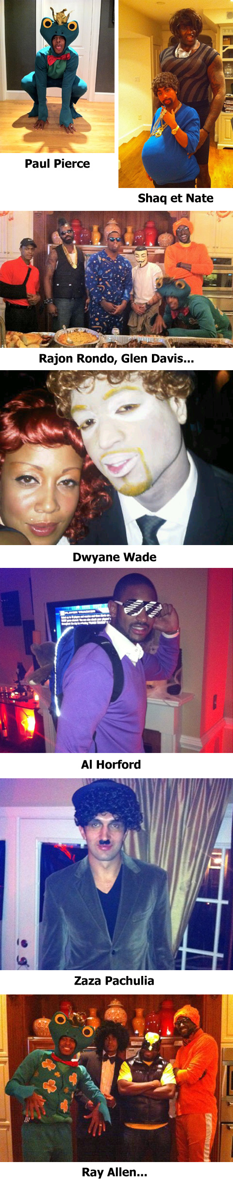 - Je dois dire que j’ai un faible pour Rajon Rondo en Tiger Woods blessé. Mais Shaquille O’Neal remporte quand même la palme avec son costume Beyonce.