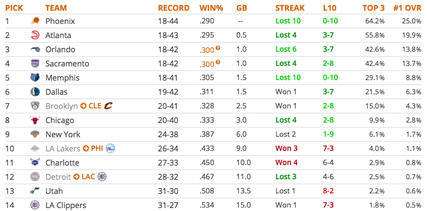 Ensuite, ce sont des seconds tours de Denver et Chicago. Les perspectives d’accrocher un gros poisson à la Draft sont donc maigres. Aucune raison ainsi de perdre volontairement et de rejoindre les Suns, les Hawks ou les Kings dans cette course.