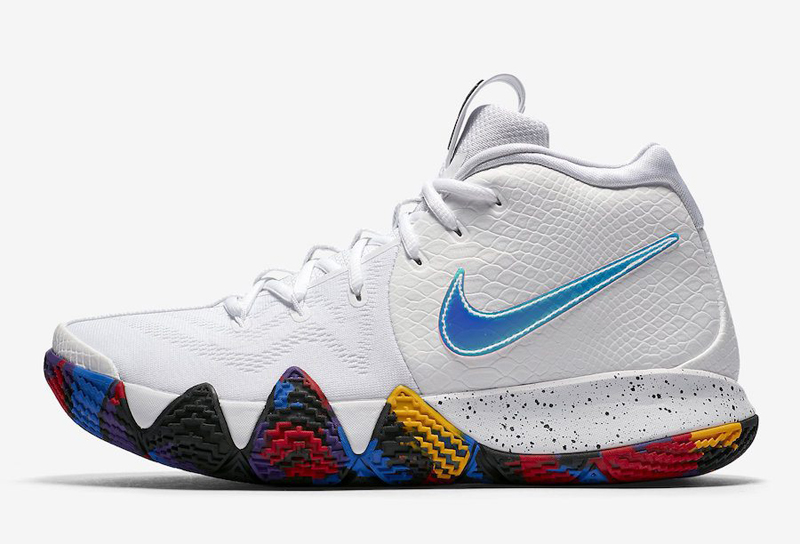 La Kyrie 4 “NCAA” va se faire attendre un peu plus que ses deux camarades, puisque sa sortie est annoncée pour le 22 mars par Nice Kicks. Le tarif devrait encore être de 120 euros.
