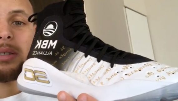 Steph’s shoes tonight represent the @MBK_Alliance. He will auction off the shoes and donate the proceeds. pic.twitter.com/4ITlSMysWs