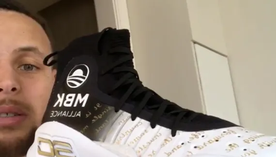 Contre les Wizards, le meneur des Warriors a porté un coloris customisé de sa Curry 4. La teinte réalisée par Dez Customz et Kreative Custom Kicks présente un dégradé qui va du blanc au noir, avec des inscriptions dorées qui reprennent un discours de Barack Obama. Mais le plus visible, c'est le logo “MBK Alliance” sur la cheville. MBK, c'est “My Brother's Keeper Alliance”, une association lancée par le 44e président des États-Unis en 2014. Elle travaille au niveau local et national pour créer des opportunités pour les jeunes gens de couleur aux États-Unis.