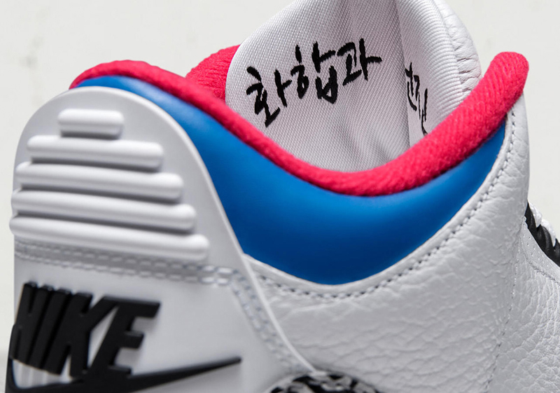 Le 10 mars, Jordan Brand va célébrer tous ces évènements avec un coloris “Seoul” de la Air Jordan 3 complètement inédit. Le drapeau de la Corée du Sud se pose sur la languette de la chaussure droite. À l’intérieur de cette languette, on retrouve la devise des Jeux de 1988 : “Harmonie et Paix.”