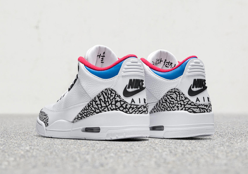 Le 10 mars, Jordan Brand va célébrer tous ces évènements avec un coloris “Seoul” de la Air Jordan 3 complètement inédit. Le drapeau de la Corée du Sud se pose sur la languette de la chaussure droite. À l’intérieur de cette languette, on retrouve la devise des Jeux de 1988 : “Harmonie et Paix.”