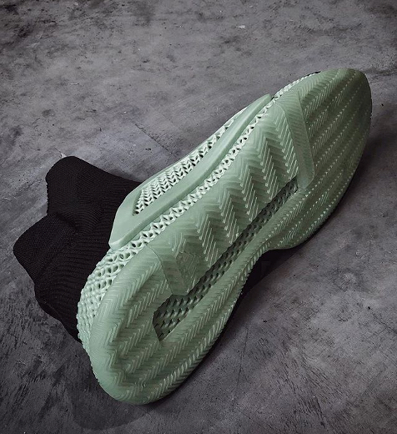 Il ne s’agit évidemment que d’une version de travail, qui pourrait largement évoluer avant une commercialisation. La tige est donc entièrement dans une fibre synthétique. La semelle a été imprimée avec ce que la marque baptise “Futurecraft 4D”. Adidas maîtrise déjà cette technologie, commercialisée sur un modèle running. Il s’agit d’un matériau liquide solidifié par un processus d’impression 3D.