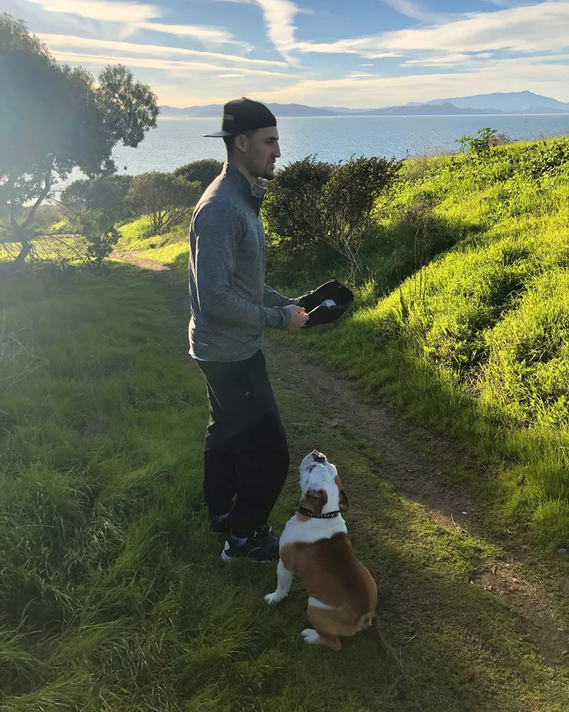 Encore plus original, un coloris qui oscille entre le beige et le rose met à l'honneur Rocco, le chien du joueur. Rocco et son maître ont droit à leur portrait sur la languette. Le reste de la chaussure est très simple. Le 4 mars, Thompson et son chien ont rencontré quelques supporters lors d'un lancement organisé à San Franciso.