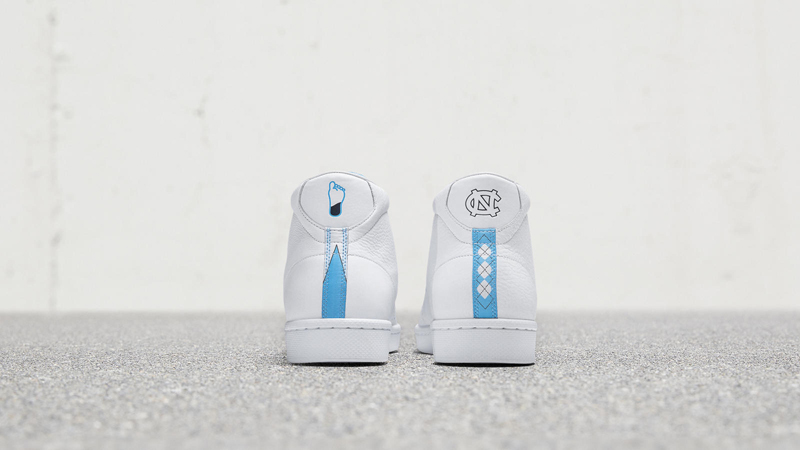 Cette chaussure vient de faire son retour, mais dans une édition réservée aux proches de Jordan Brand et aux joueurs de North Carolina. Le passé et le présent se retrouvent mêlés. Le chevron de Converse en remplacé par un Jumpman. Au talon, le motif du short de l’équipe de 1982 est présent à gauche. À droite, c’est le tartan arboré par le groupe titré en 2017.