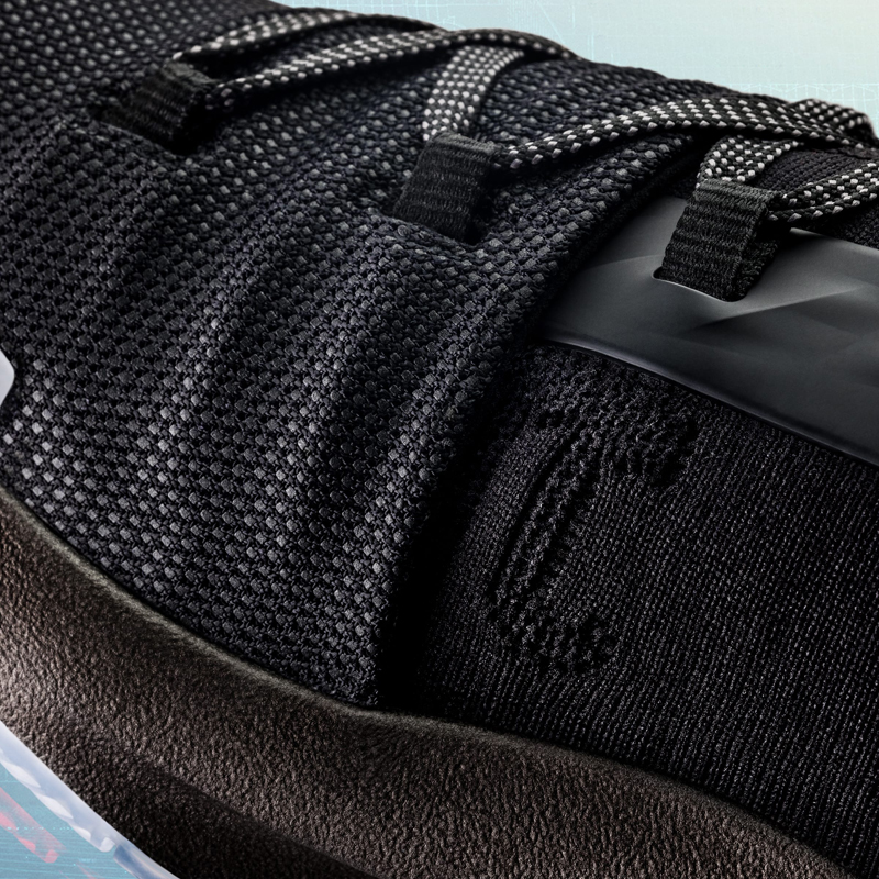Comme le laissaient deviner les photos volées mises en ligne ces dernières semaines, cette Curry 5 propose une tige textile, avec des renforcements autour du pied et au talon. Pas encore d’informations sur le système d’amorti.