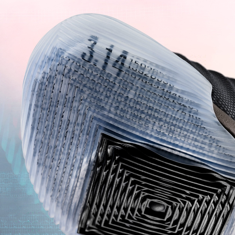 Mais attention, seulement 314 exemplaires du premier coloris ont été mis en vente ! La teinte est baptisée “Pi Day”, puisqu’elle est sortie le 14 mars, qui s’écrit 3/14 aux États-Unis. Le nombre Pi est d’ailleurs présent sous l’avant du pied, à travers la semelle translucide.