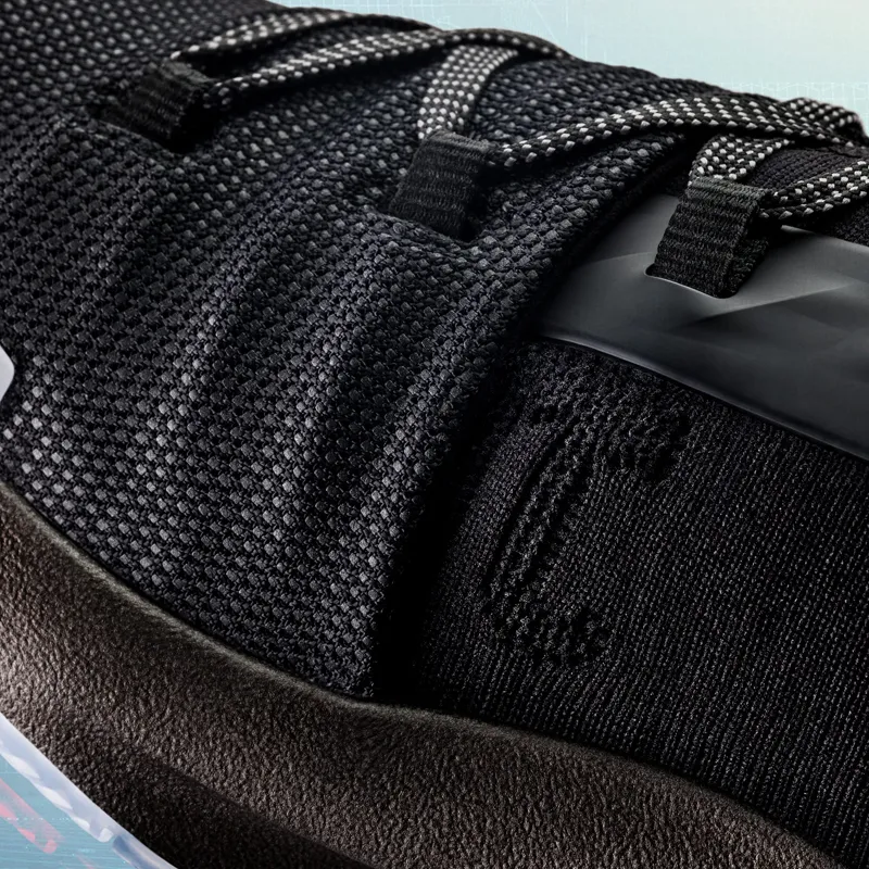 Comme le laissaient deviner les photos volées mises en ligne ces dernières semaines, cette Curry 5 propose une tige textile, avec des renforcements autour du pied et au talon. Pas encore d'informations sur le système d'amorti.
