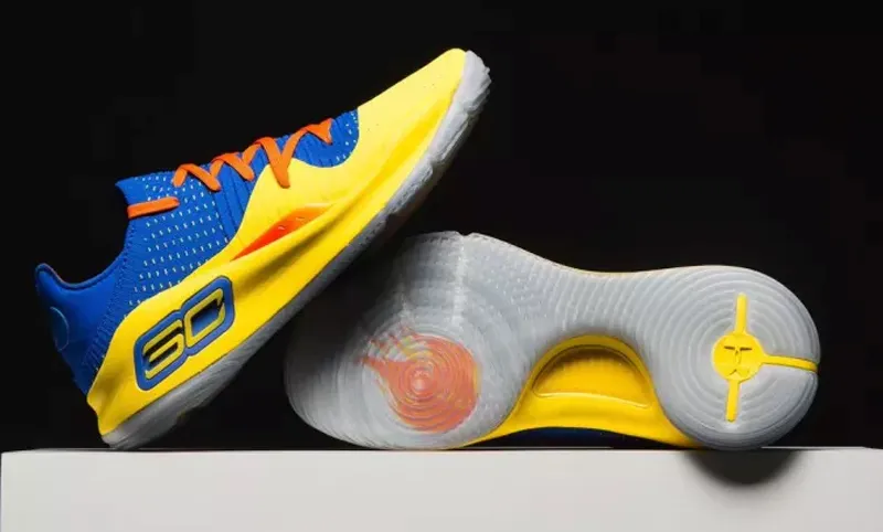 Car en plus du jaune et du bleu des Warriors, la marque a ajouté des lacets orange et une flamme sous le pied. Baptisée “On Fire“, cette Curry 4 basse a un petit goût de NBA Jam, le mythique jeu vidéo de basket. Il ne semble pas s'agir d'une collaboration officielle, mais la référence est là.