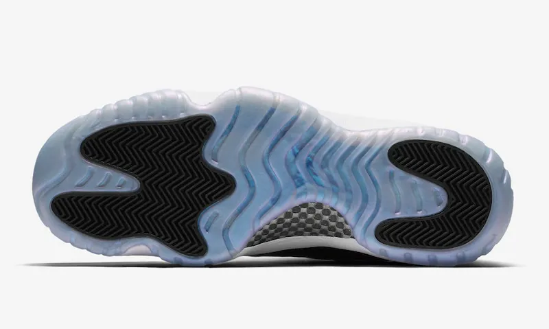 La différence ? Une touche de turquoise sur le numéro 23 au talon et le Jumpman situé au milieu des lacets. Le vert émeraude est aussi censé se refléter un peu sur le cuir verni. Il y a également une différence dans les matériaux, puisque le mesh habituellement présent sur la partie blanche de la tige est remplacée par du cuir.