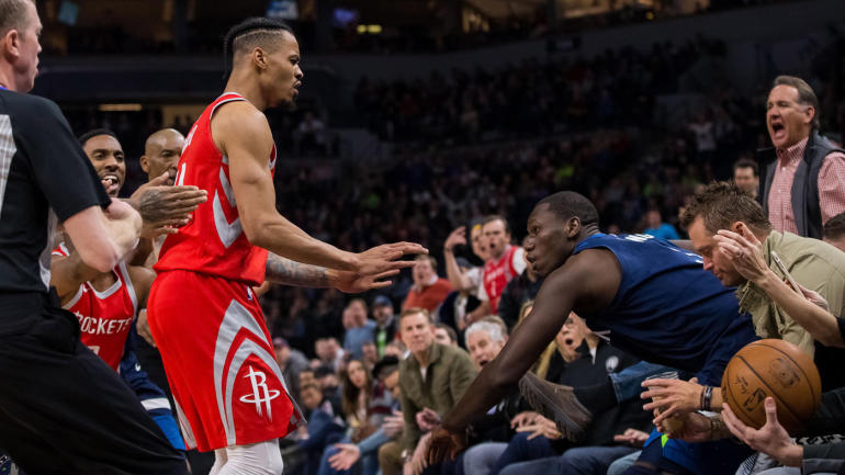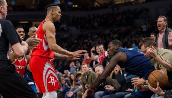 Le Wolves – Rockets d’il y a deux jours a donné lieu à un grand classique : un joueur pousse un adversaire, tandis qu’un autre rapplique pour afficher sa solidarité avec son camarade. Dans ce match-ci, la scène s’est jouée lors d’une bataille sur une prise de position entre Chris Paul et Gorgui Dieng. Le Wolf a fini par pousser CP3 au sol avant que Gerald Green ne pousse à son tour le Sénégalais au premier rang des spectateurs.