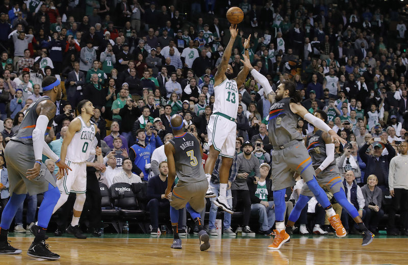 L’affaire semble entendue, même après un petit lancer abandonné en route par Westbrook et malgré le 3 points de Rozier dans la foulée, ramenant la marque à 97-99. Carmelo se présente à son tour sur la ligne, affichant un beau 81,2% d’adresse dans l’exercice en carrière, mais rate ses deux tentatives. Avec 7 secondes au compteur, Marcus Morris hérite d’un ballon ressorti par Tatum, feinte et place un 3 points devant Adams qui ne touche que la ficelle pour offrir la victoire aux Celtics au buzzer.
