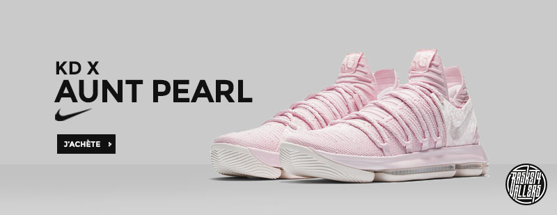 Commandez chez B4B la Nike KD X Aunt Pearl hommage à la tente de l’ailier des Warriors et à ses efforts pour sensibiliser à la lutte contre les cancers feminins.